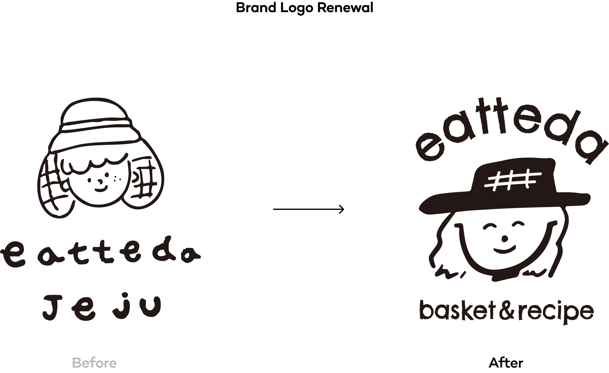 Eatteda Jeju is an online store service where Eatte Unnie packs seasonal ingredients capturing the season of Jeju into bundles, delivering the daily life and stories of Jeju to consumers. The signature logo, which resembles Eatte Unnie's face, has been renewed from a doodling-style design to one that conveys a distinct impression, and graphics representing the various ingredients contained in the bundles have been developed and applied. (2024)